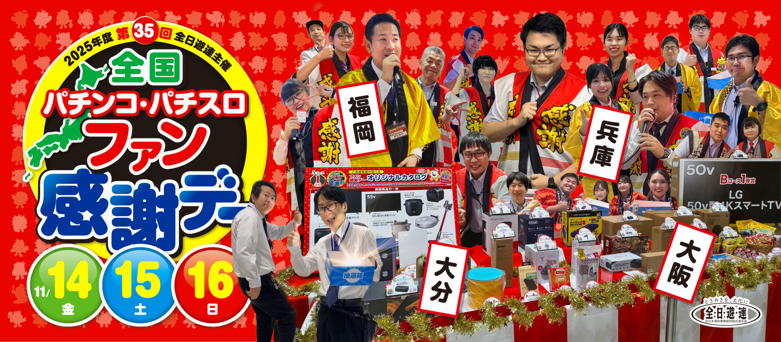 11月14・15・16日の3日間、全日遊連主催「全国パチンコ・パチスロファン感謝デー」が開催されました。